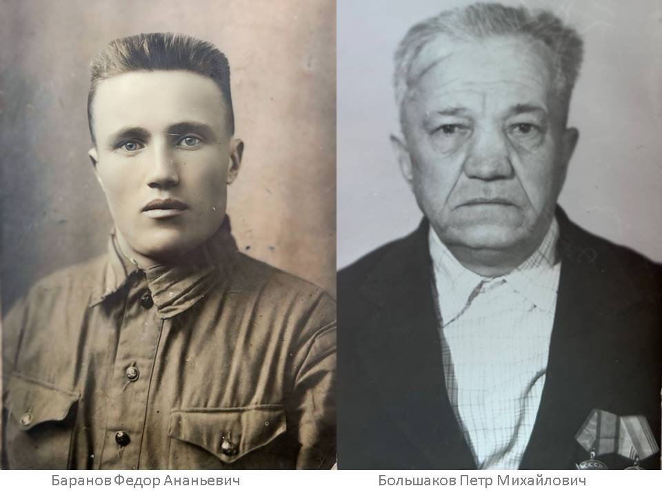 Мой дед- Баранов Федор Ананьевич Родился в 1909 года в с.Кошкаровка Свищевского района Пензенской области. 18 января 1942 года призван в ряды Красной Армии Телегинским РВК Пензенской области. Проходил службу в 996 стрелковом полку 286 стрелковой дивизии, 220 зп 8А. В ходе войны Федор Ананьевич неоднократно был ранен, но после каждого ранения возвращался в свою дивизию для дальнейшей службы. Умер -23 сентября 1980 года.